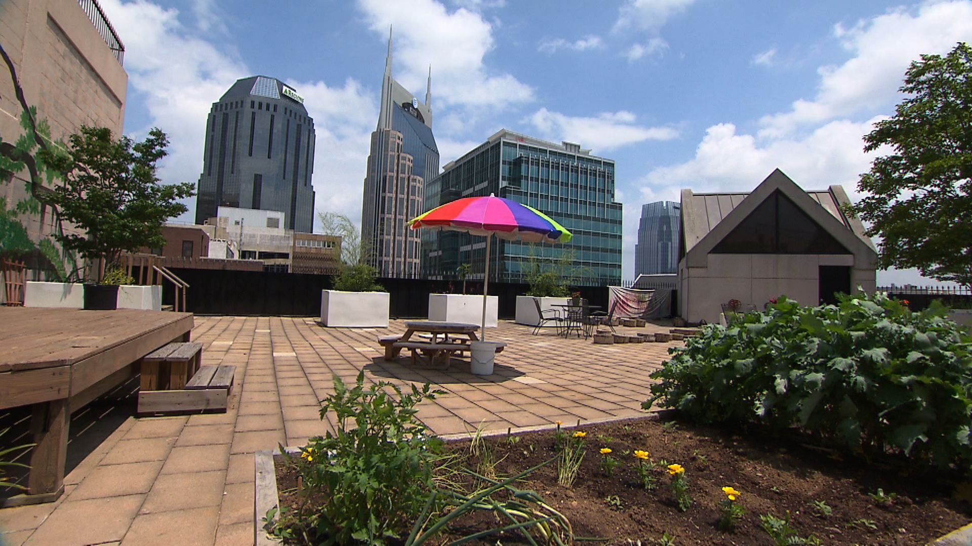 Julie Berbiglia takes us to the rooftop of a downtown Nashville church building that hosts a community garden featuring deep raised beds, large planters and rain barrels.
